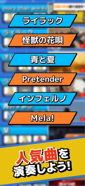 De gameplay draait om het tikken op vallende noten, wat zorgt voor een meeslepende ervaring die de vreugde van een bandlid zijn nabootst. Met een selectie van populaire J-POP nummers, zoals 'ライラック' en '青と夏', kunnen spelers gemakkelijk hun muzikale vaardigheden ontwikkelen. De app biedt ook de mogelijkheid om nummers aan te vragen, waardoor het steeds vernieuwend blijft. Dit maakt het een ideale keuze voor muziek- en instrumentliefhebbers die op een leuke manier willen genieten van rhythm games.